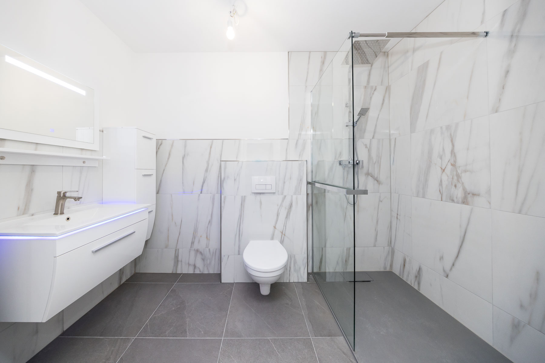 – Modernes Badezimmer mit bodentiefer Dusche