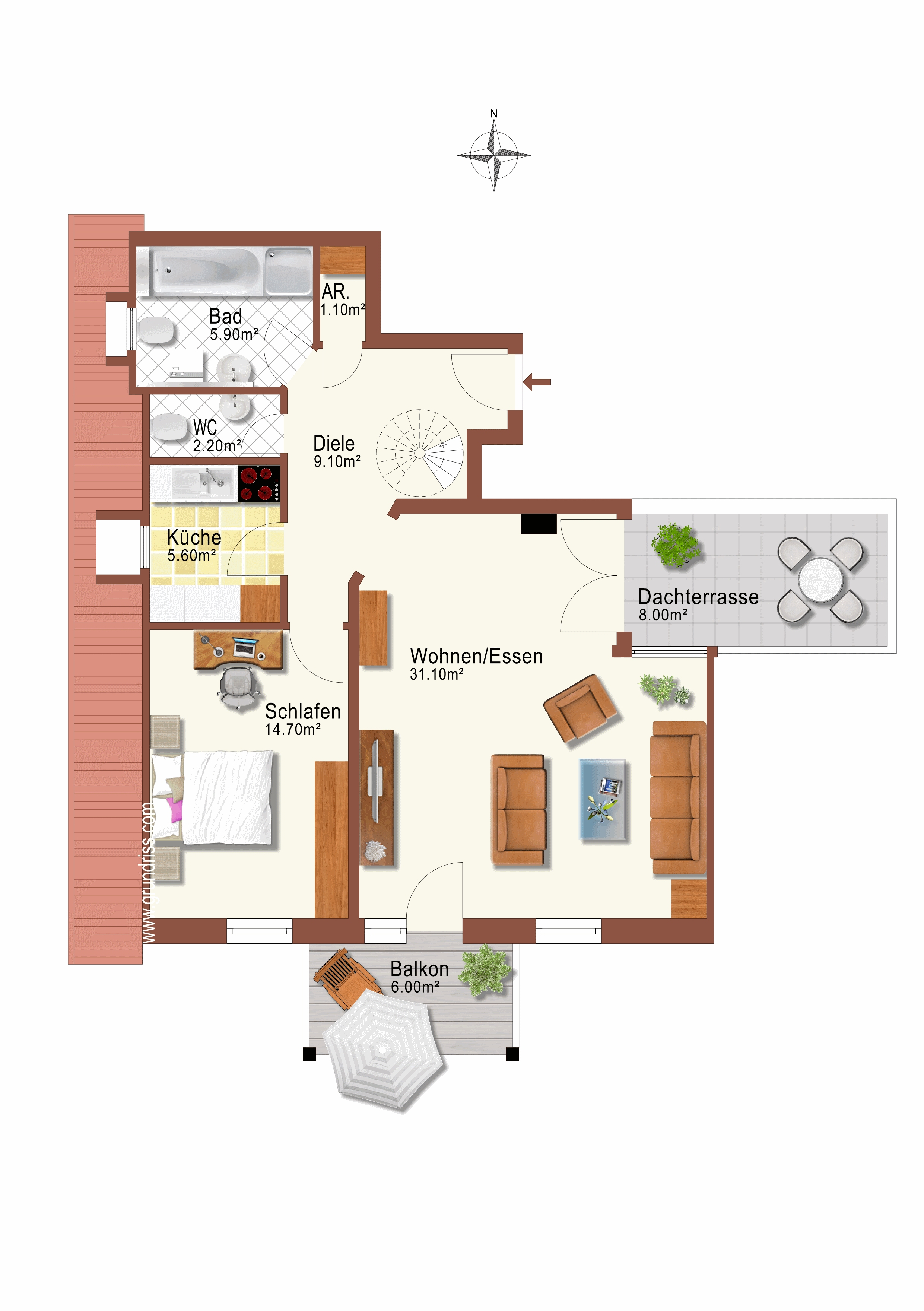– Dachterrasse mit 8 m² Südausrichtung