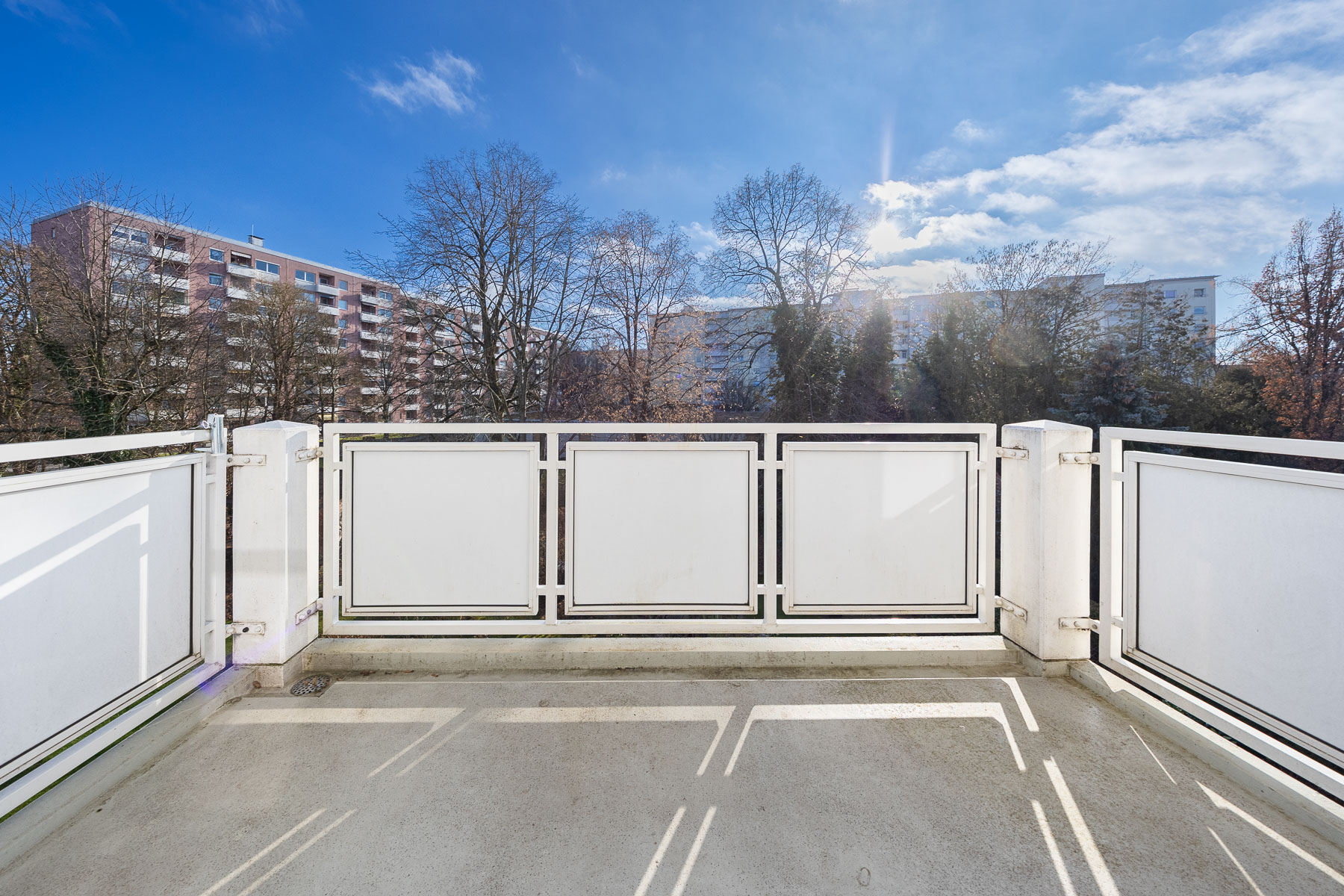 Im Münchner Südwesten an der Grenze zwischen Blumenau und Kleinhadern steht diese hübsche Wohnanlage. Die Galeriewohnung befindet sich auf der Rückseite des Gebäudes (Südseite) und ist somit abgewandt von der Straße.