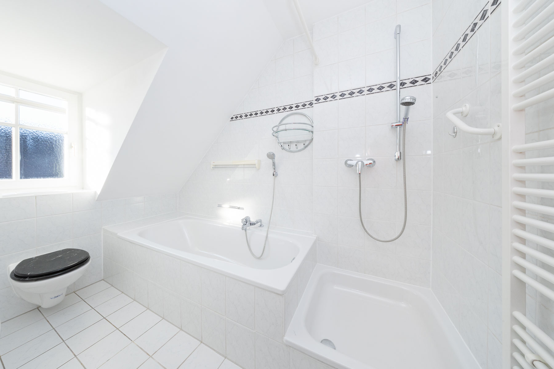 - Ausstattung des Bades Badewanne, Dusche, Fenster